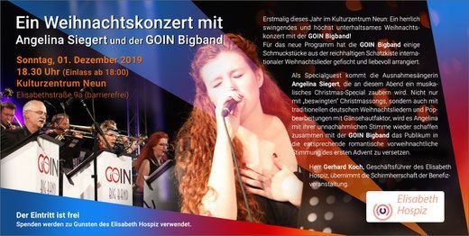 Herzliche Einladung zum Weihnachtskonzert mit Angelina Siegert und der GOIN Bigband